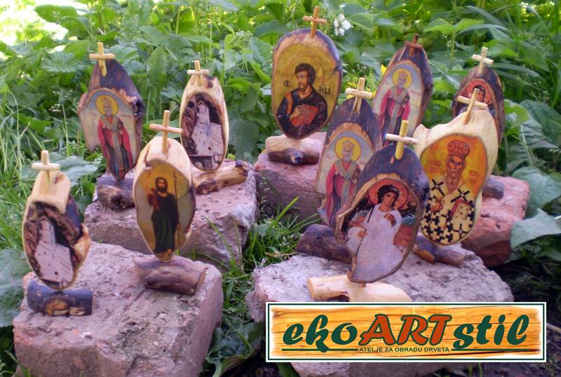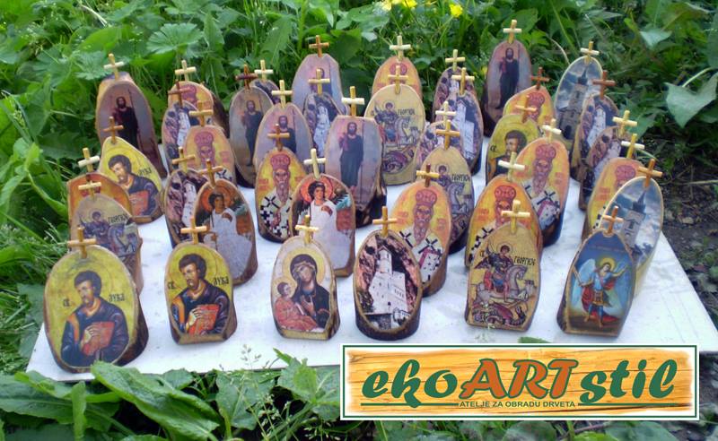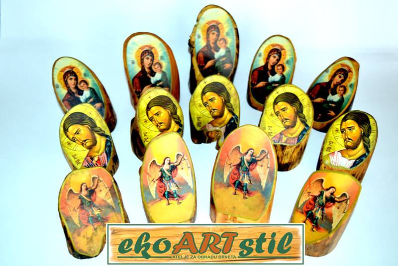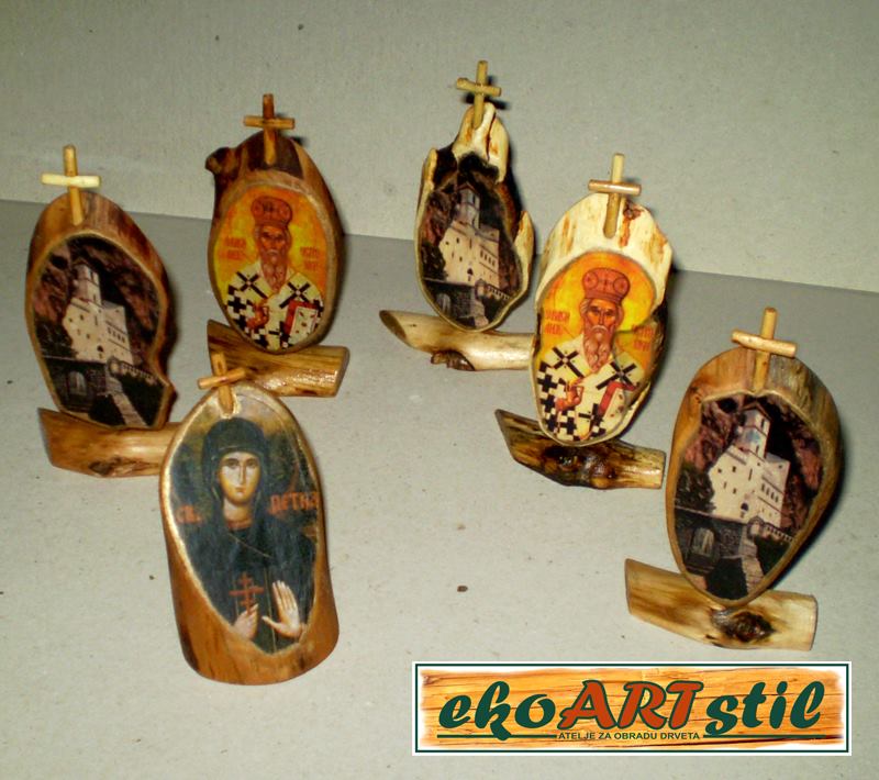 Ikonice-suveniri, veličina 10-12 x 5-7 cm, izrađene od punog drveta, zaštićene ekološkim uljem