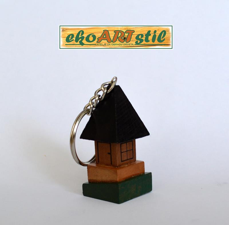 Privjesak “Planinska kuća”, veličina 6 x 2 cm, puno drvo.